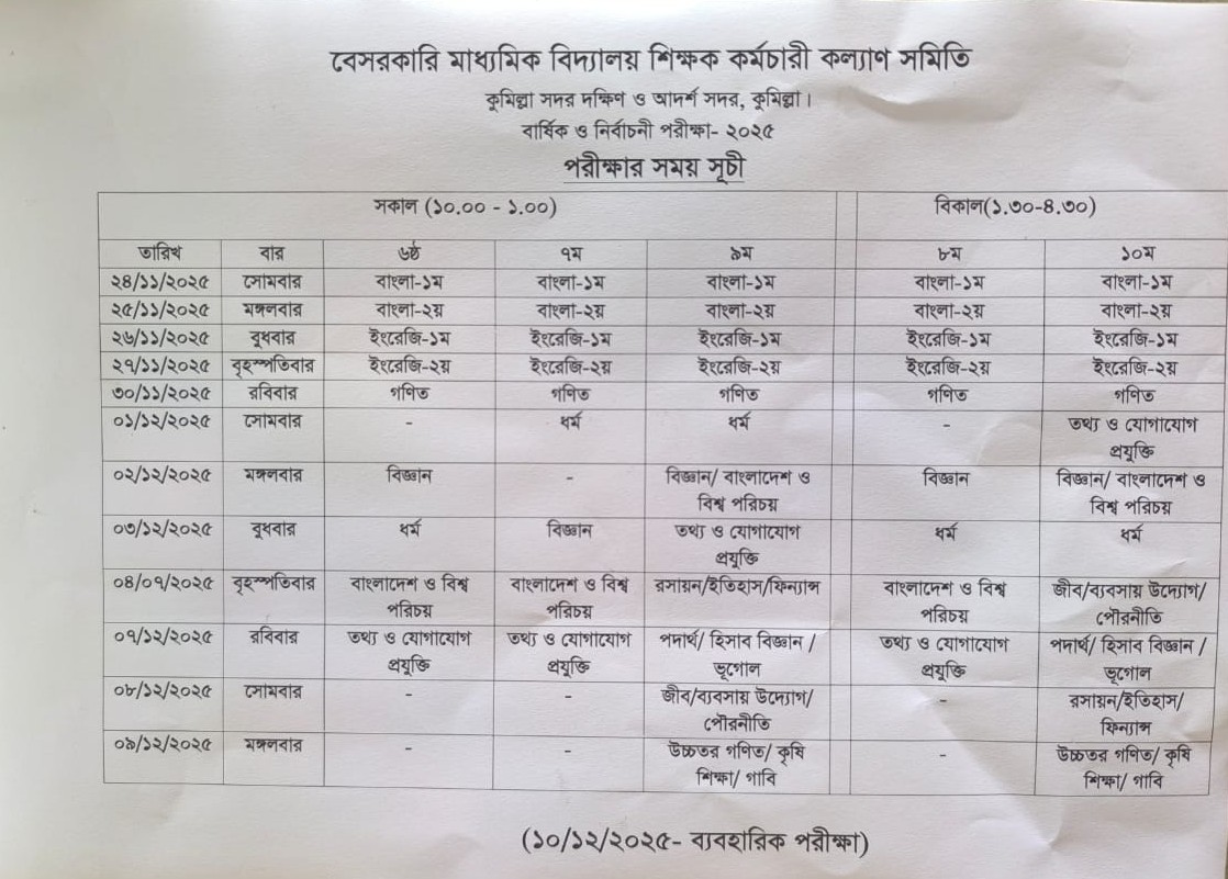 06-Nov-2025 বার্ষিক ও নির্বাচনী পরীক্ষা ২০২৫