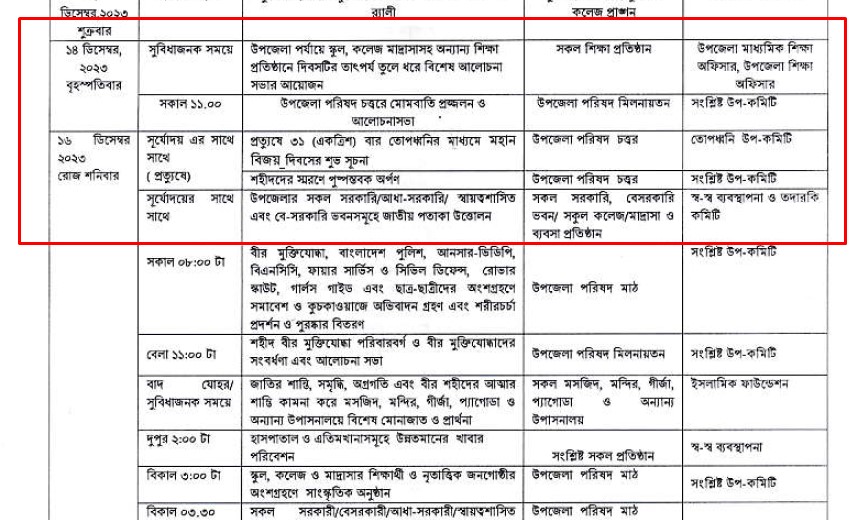 09-Dec-2023 আগামী ১৬ ই ডিসেম্বর মহান বিজয় দিবস উদযাপন প্রসঙ্গে